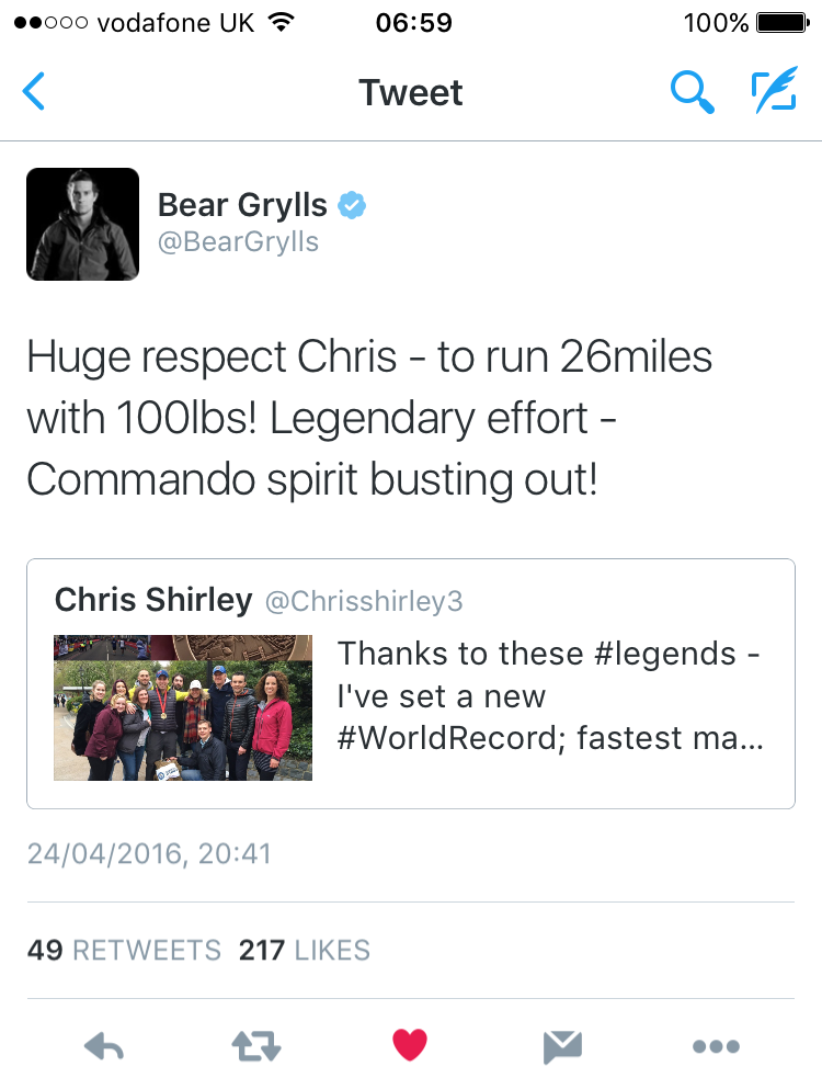 In 2016, I set my first world record when I successfully completed the London marathon carrying a 100-lb backpack, something that had never been done on record before (I suspect people have completed it before so I don’t think of myself as being the first to have ever done it).